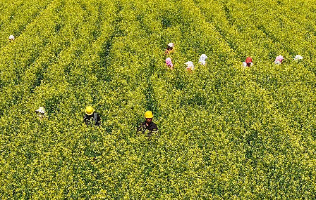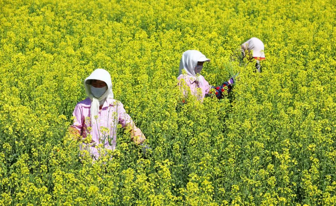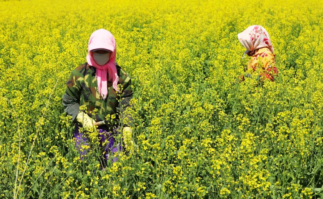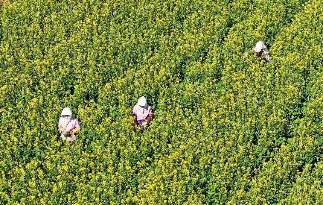 连日来,当地村民们正忙着给油菜清理杂株,确保油菜丰产丰收。